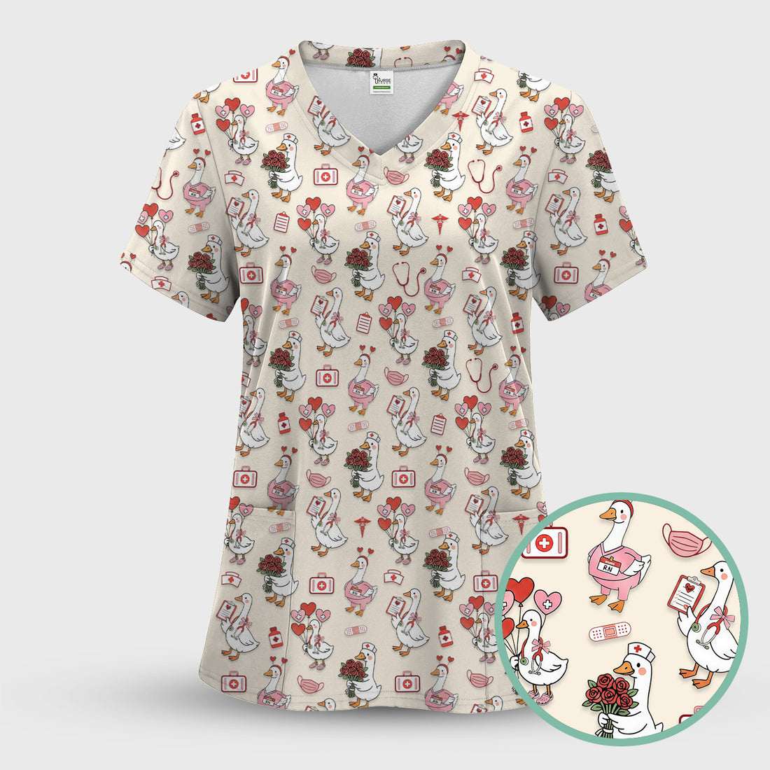 Cute Goose Nurse Medical Pattern Scrub Top, Comfortable Scrubs for Nurses