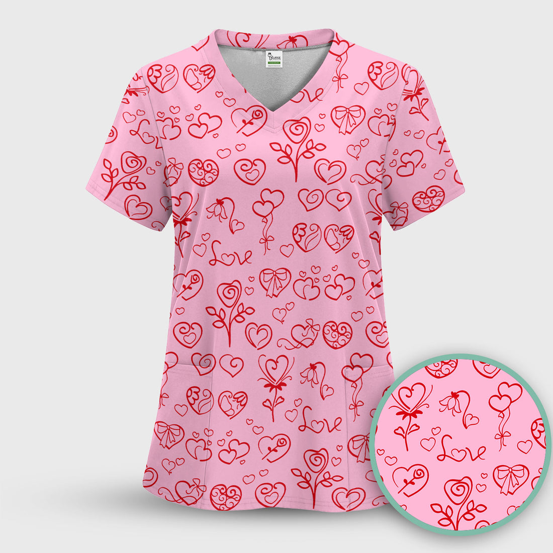 Hearts Scrub Top For Nursing, Valentine Heart Pattern Nurse Shirt, Comfortable Scrubs For Nurses