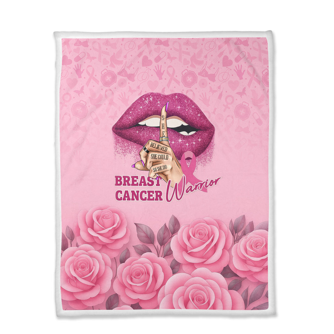 Custom Breast Cancer Awareness Floral Blanket - Warrior Quote & Rose Pattern Graphic - Gift for RN LPN CNA