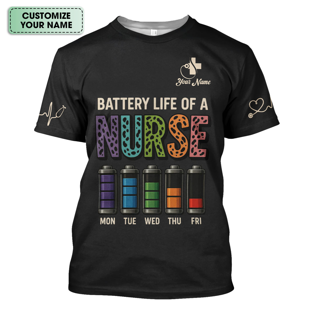 Custom Battery Life Nurse Shirt - Battery Life of a Nurse Graphic Tee - RN LPN CNA Healthcare Workers Gift