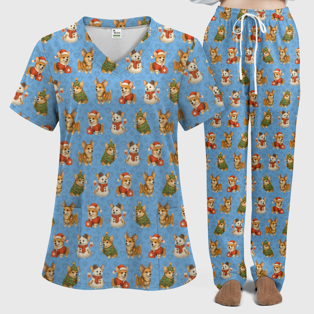 Corgi Christmas Scrubs Set - Adorable Festive Scrub Top & Pants - Fun Holiday Corgi Scrubs Perfect for Nurse Gift Season