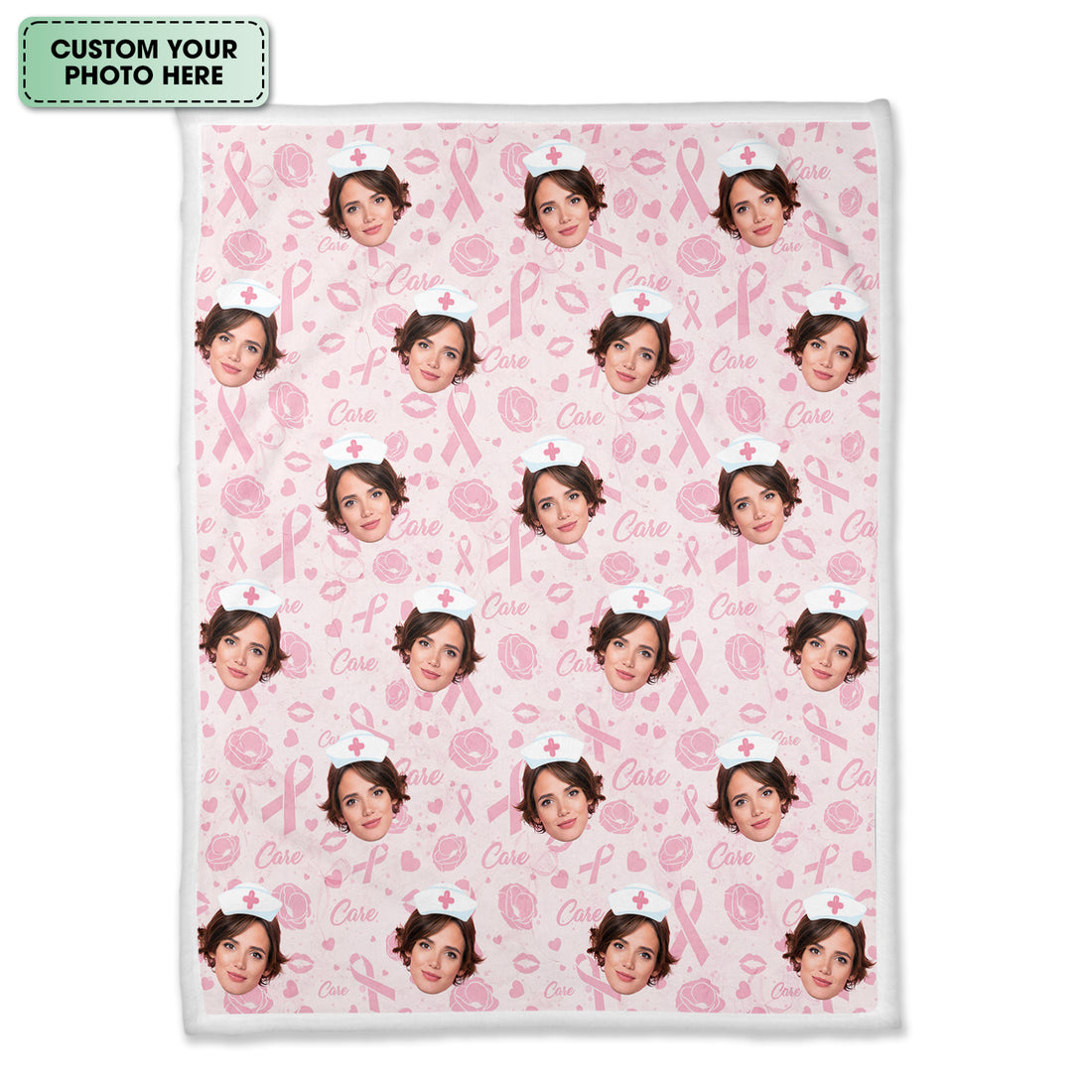 Custom Face Nurse Blanket Pink Ribbon Awareness - Personalized Breast Cancer Support Throw - Gift for Women RN LPN CNA