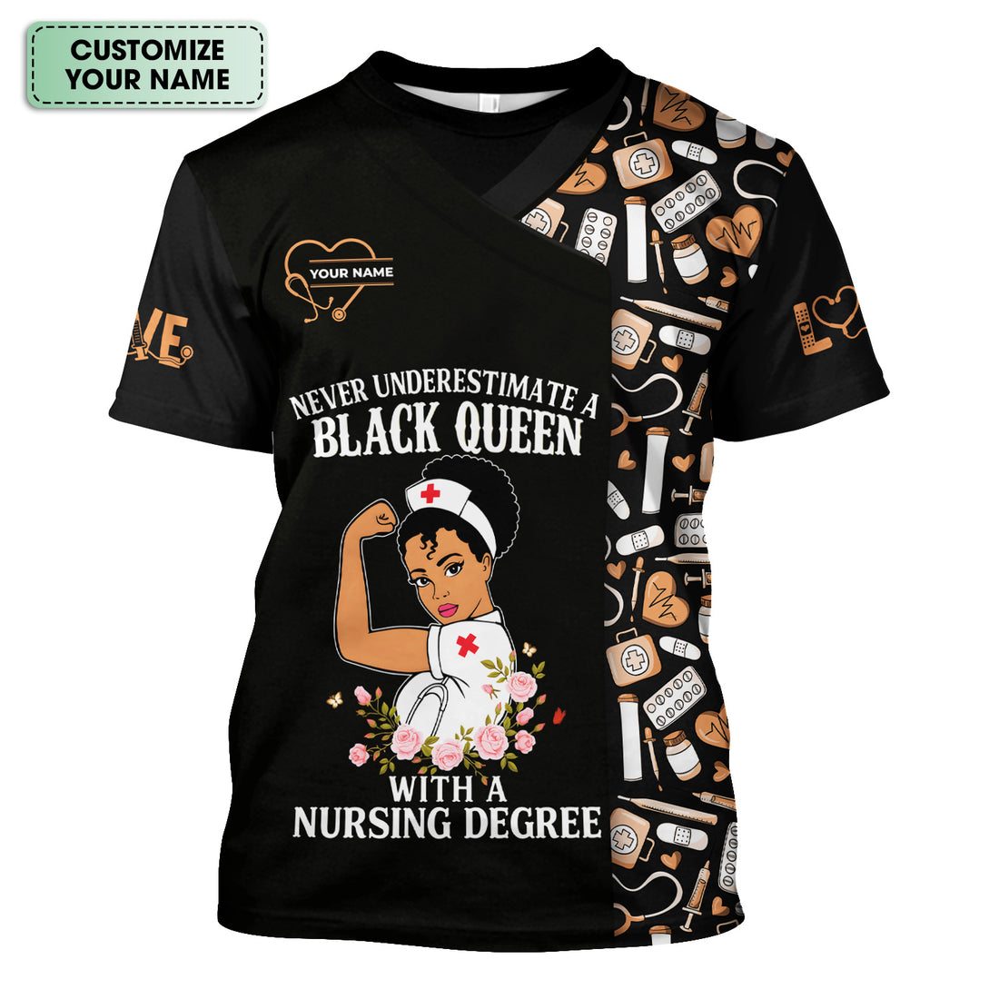 Custom Empowering Black Queen Nurse Shirt - Black Queen With A Nursing Degree - Gift for RN LPN CNA