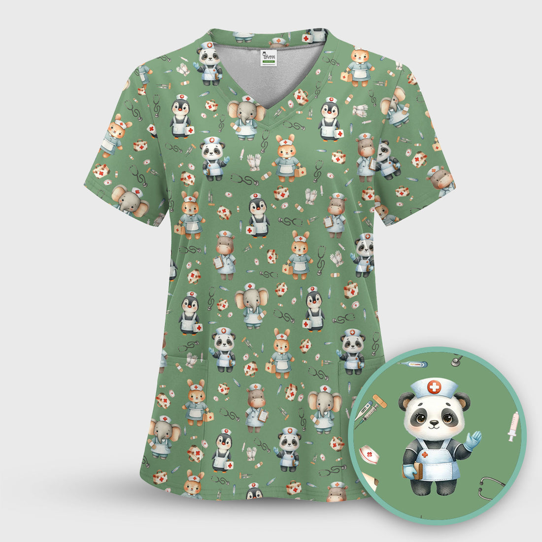 Cute Bear Nurse Scrub Top - Adorable Medical Pattern Shirt - Funny Animal Scrubs for Women Healthcare Workers