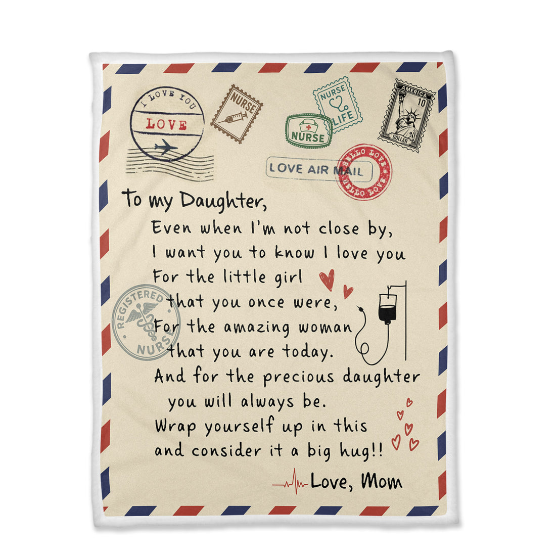 Personalized Nurse Letter Blanket for Daughter - Mom to Daughter Nurse Throw - Emotional Gift for RN CNA LPN Healthcare Workers
