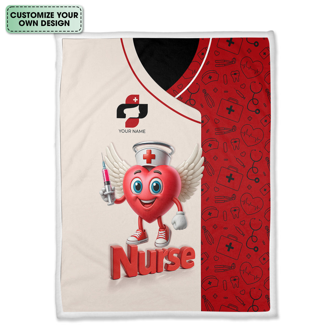 Personalized Funny Nurse Blanket with Winged Heart Cartoon - Cute Syringe Design for Healthcare Workers - Custom RN LPN CNA Gift