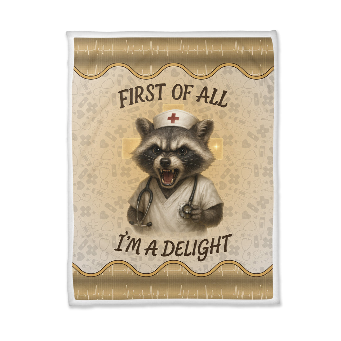 Personalized Funny Nurse Blanket - Gift for Women RN CNA LPN - Angry Raccoon Design 'First Of All I‰Ûªm A Delight' - Cozy Throw for Medical Staff