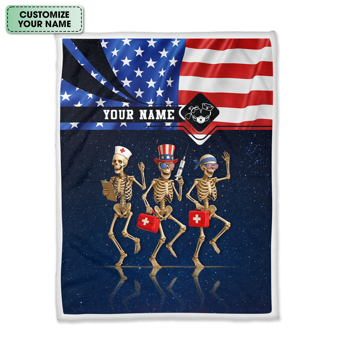 Nurse Life Skeleton Blanket - American Flag 4th of July Throw - Custom Gift for RN CNA LPN