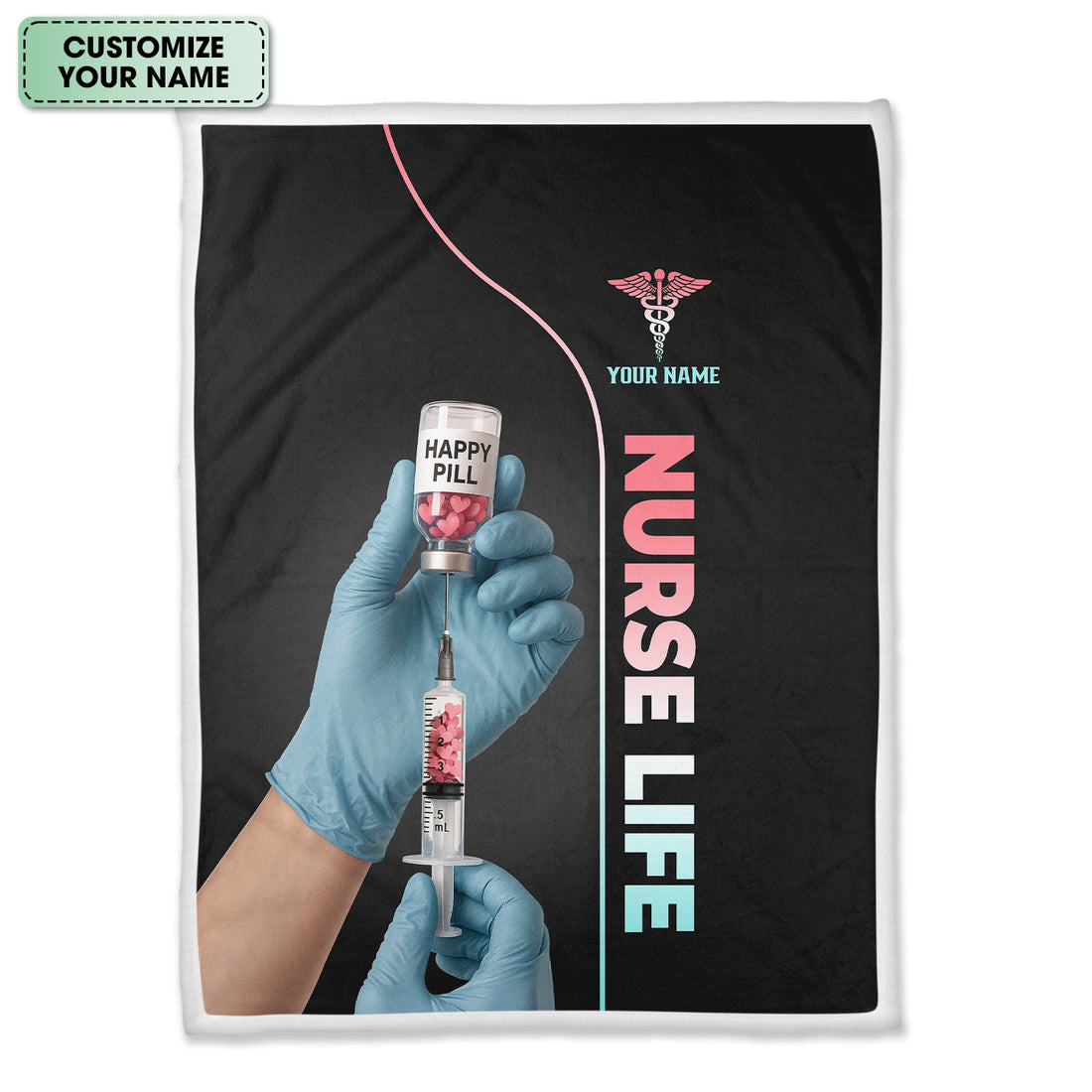 Personalized Nurse Blanket - Funny Happy Pill Design Throw - Gift for Women RN CNA LPN