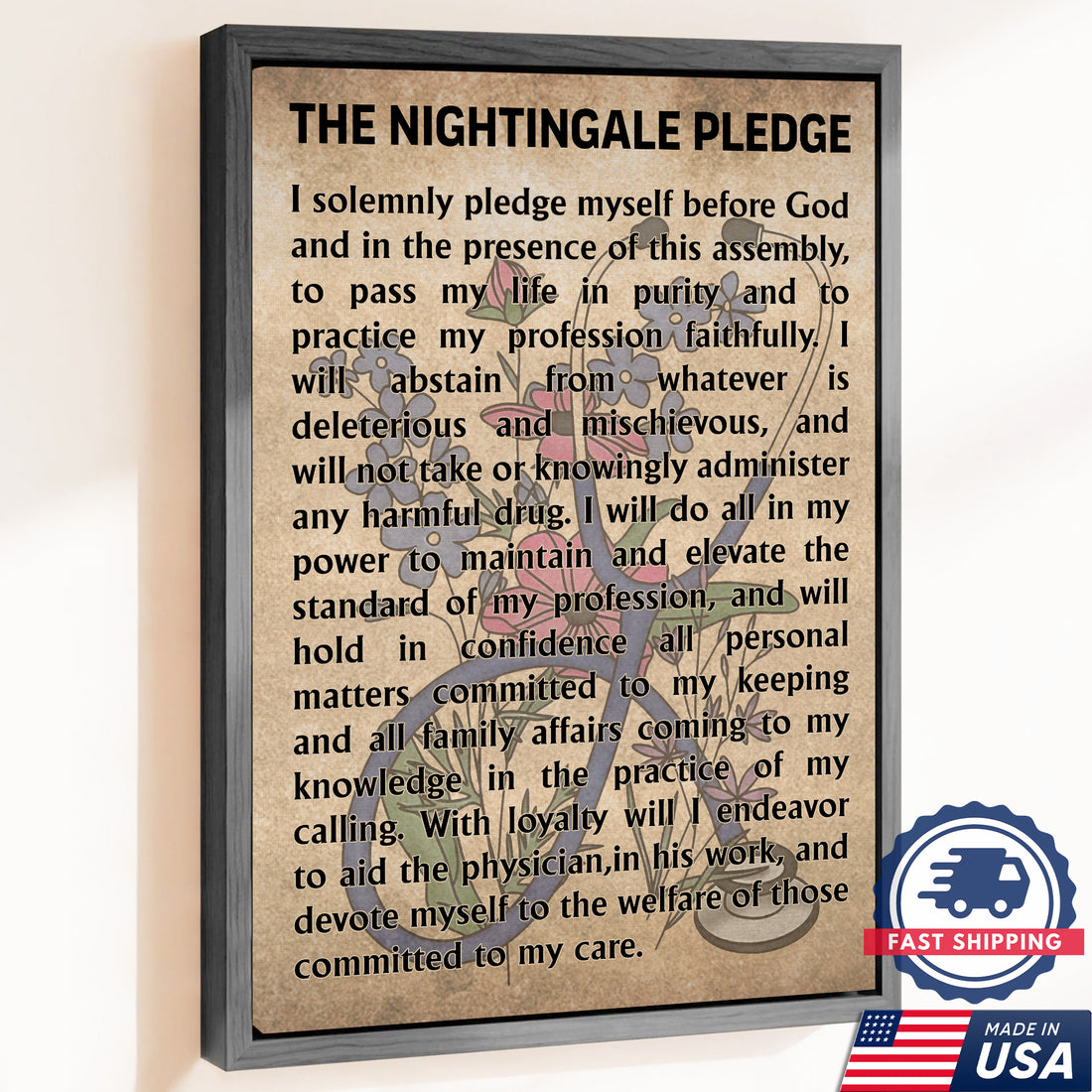 Nightingale Pledge Canvas, Nurse Graduation Gift Wall Decor for RN LPN, Healthcare Worker Office Home Decor Gift