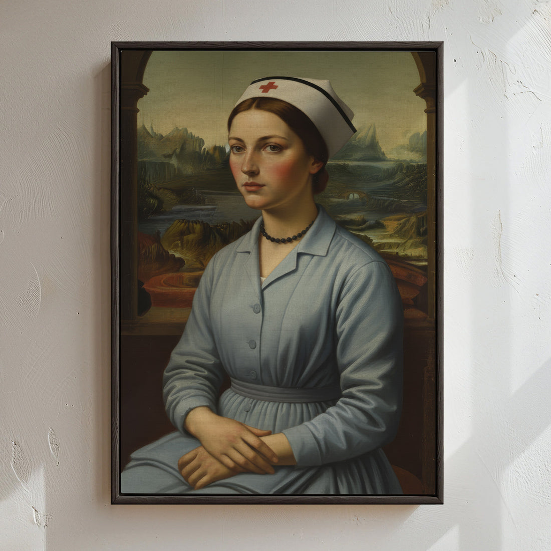 Vintage Nurse Mona Lisa Parody Canvas, Classic Renaissance Style Medical Wall Art, Gift for RN LPN CNA Healthcare Workers