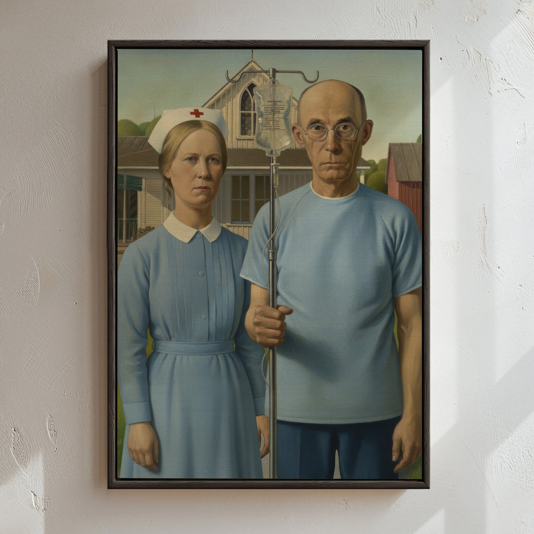 Vintage Medical Humor Canvas, American Gothic Parody Wall Art, Funny Gift for RN LPN CNA Healthcare Workers