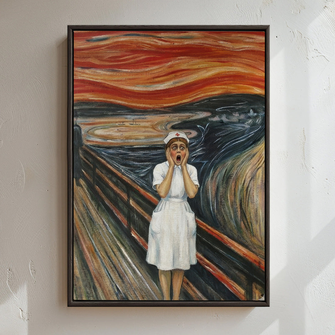 Funny Stressed Nurse Wall Art, The Scream by Munch Parody Expressionism Canvas, RN LPN CNA Gift