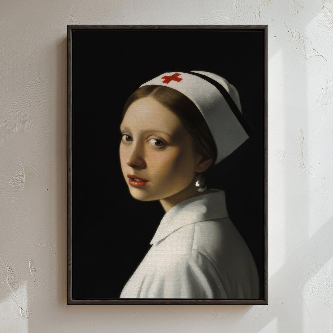 Nurse with a Pearl Earring Parody Canvas, Nurse with a Pearl Earring Parody Canvas, RN LPN CNA Gift