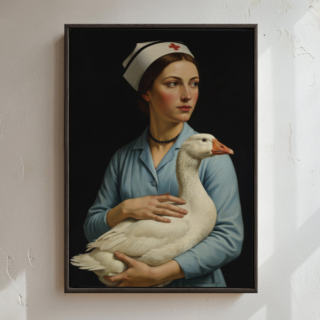 Funny Vintage Nurse and Goose Canvas, Medical Humor Wall Art, RN LPN CNA Healthcare Workers Gift
