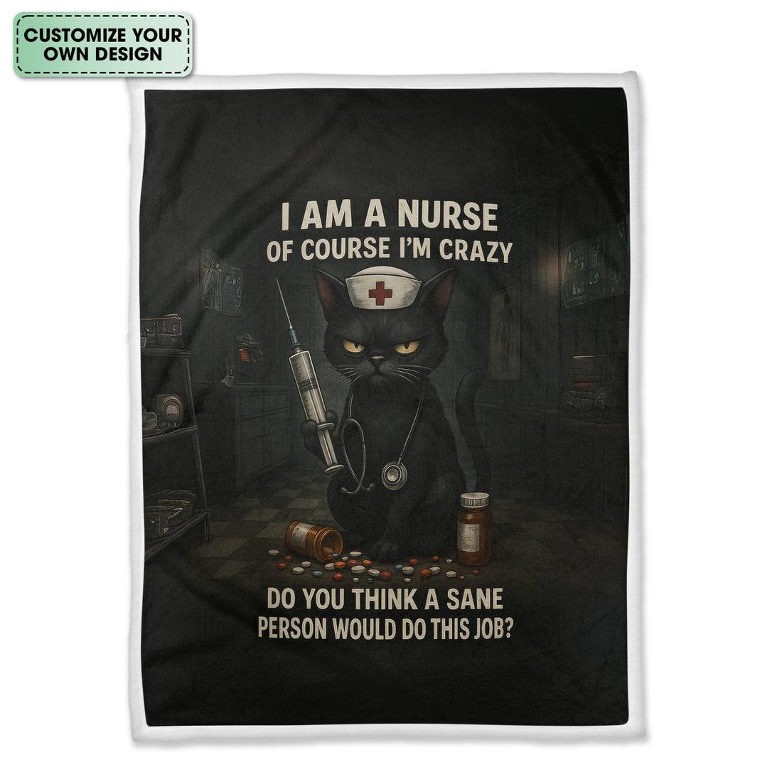Personalized Funny Nurse Cat Blanket for Women - Of Course I‰Ûªm Crazy Quote - Gift for Nurses RN CNA Cat Lovers