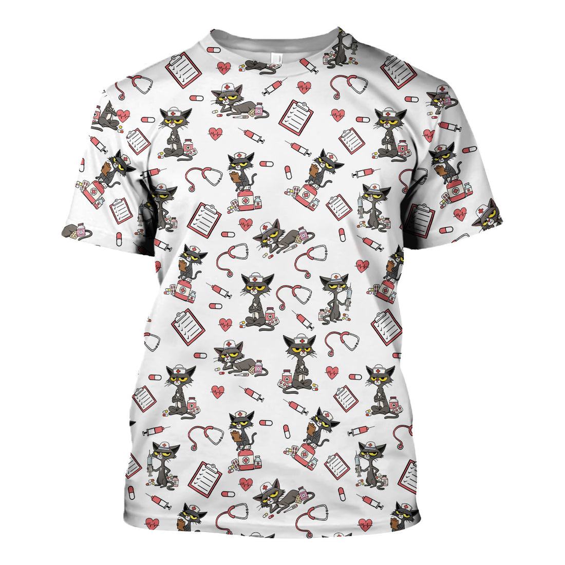 Personalized Funny Nurse Cat Shirt - Cute Black Cat with Stethoscope & Pills - Gift for RN CNA LPN