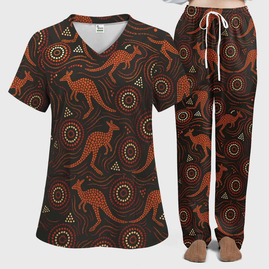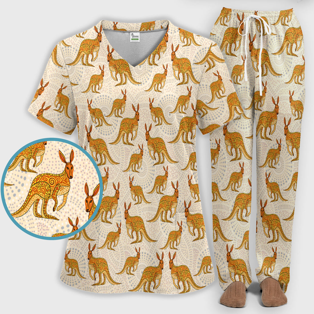 Australian Kangaroo Dot Art Inspired Nursing Scrub Set - Women Uniform