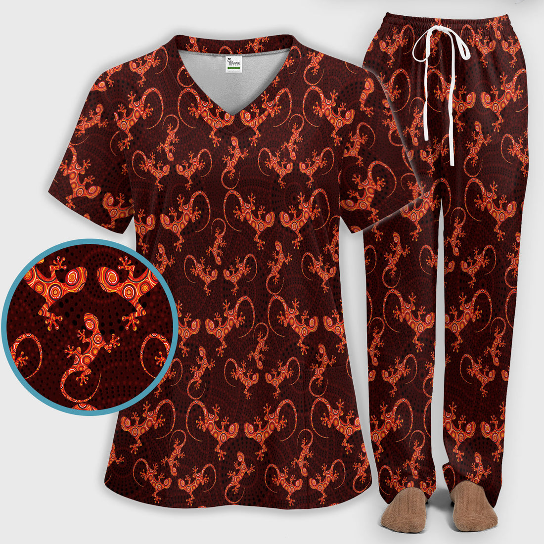 Australian Gecko Dot Art Inspired Nursing Scrub Set - Women Uniform