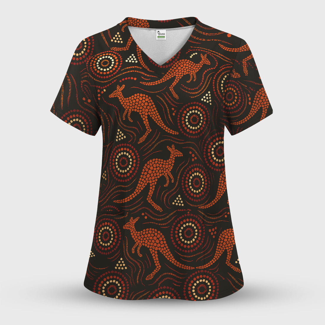 Australian Aboriginal Art Pattern Nurse Scrub Top, Kangaroo Dot Nurses Shirt For Women, Breathable Fabrics Nursing Uniform