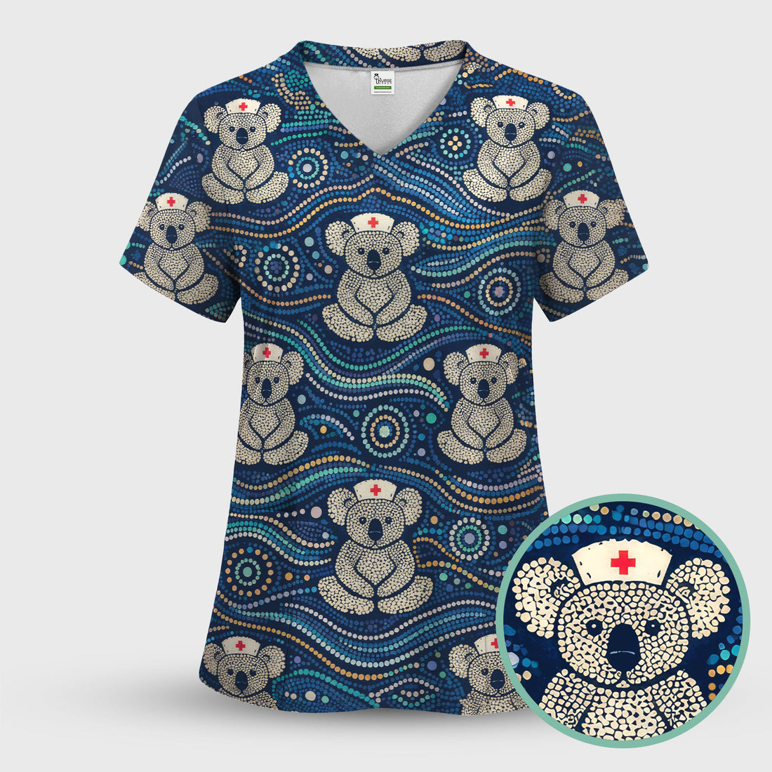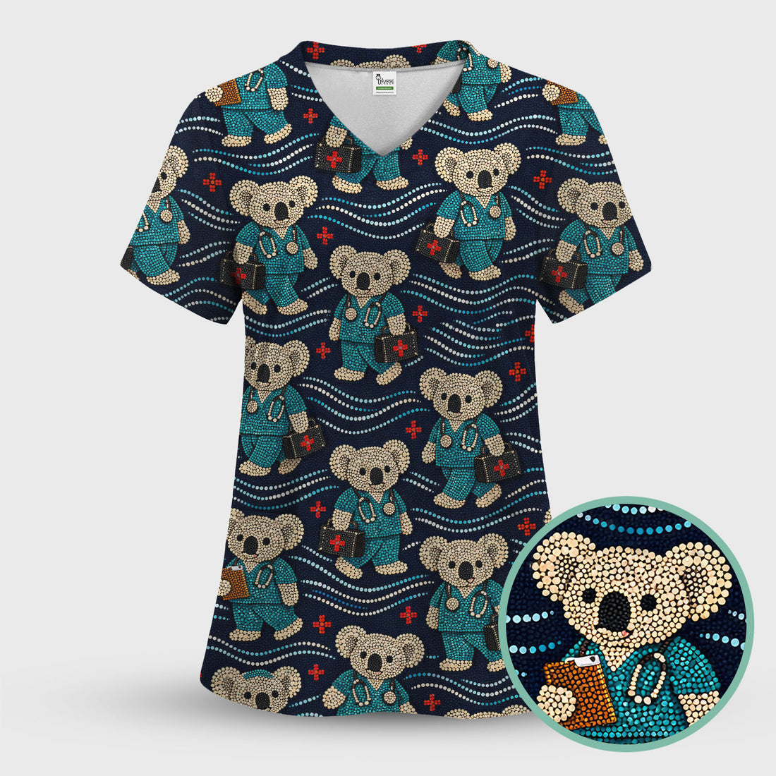 Australian Koala Dot Art Nurse Scrub Top - Women V-Neck Shirt