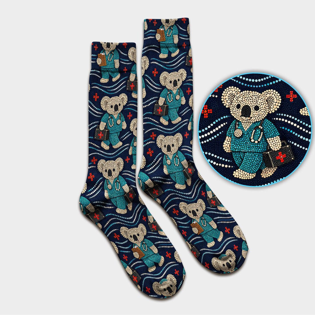 Australian Indigenous Inspired Dot Art Scrub Socks, Cute Koala Pattern Nurse Sock, Comfortable Scrubs For Nursing