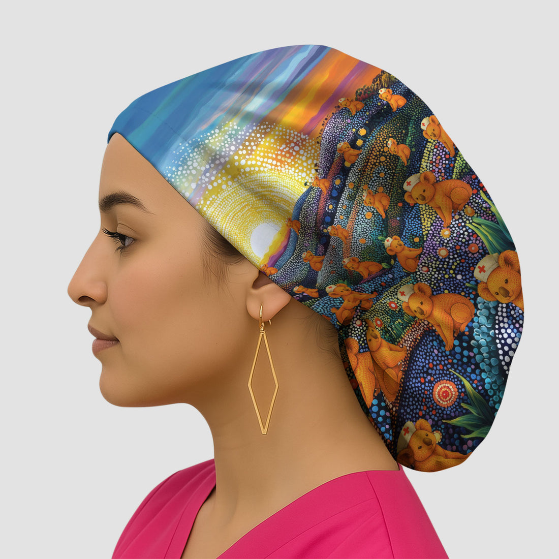 Australian Koala Dot Art Nurse Scrub Caps for Women
