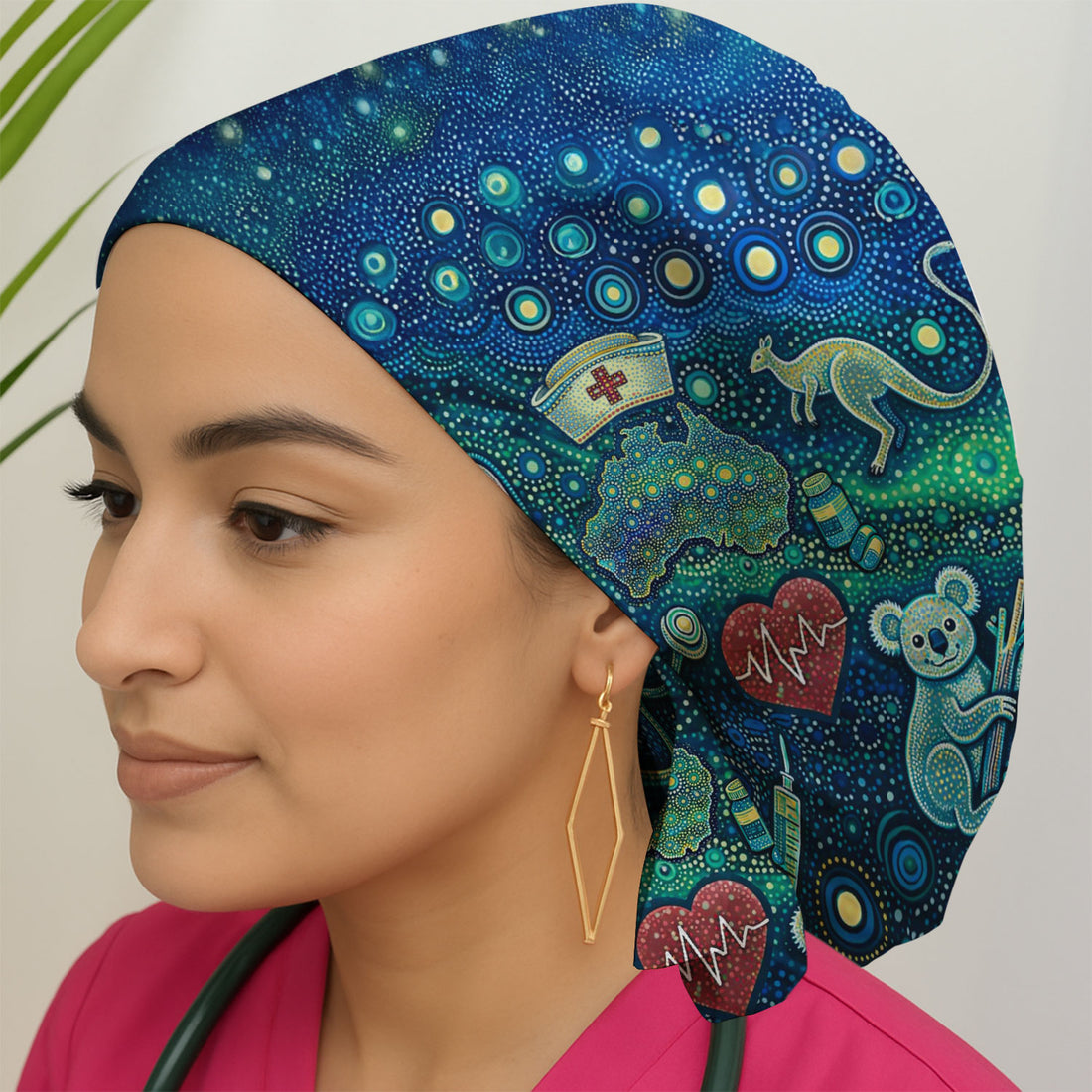 Aboriginal Nurse Australia Scrub Cap, Kangaroo Koala Dot Art Medical Pattern Hat, Breathable Fabrics Nursing Uniform