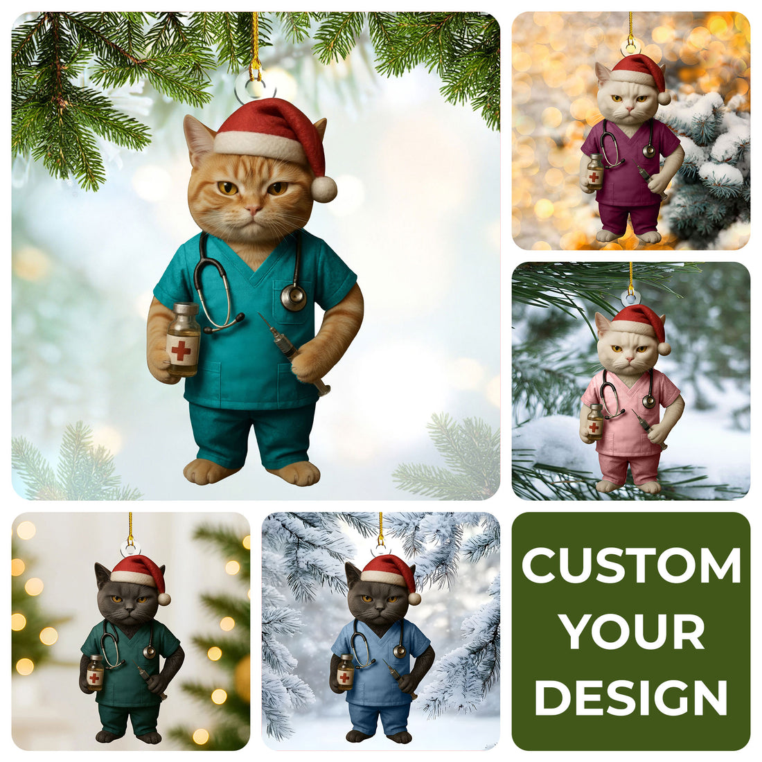 Personalized Christmas Cat Nurse Ornament - Funny Cat Doctor Xmas Tree Decor - Cute Medical Ornament Gift for Nurses and Doctors