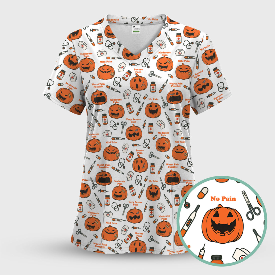 Halloween Nurse Scrub Top - Pumpkin Pain Scale Medical Shirt - Spooky Gift for RN LPN CNA