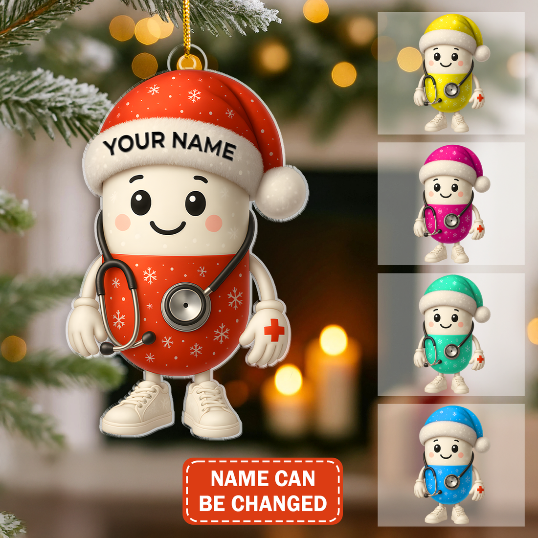 Personalized Nurse Ornament Christmas Tree, Cute Medical Pill RN CNA Gift, Custom Name Holiday Decoration