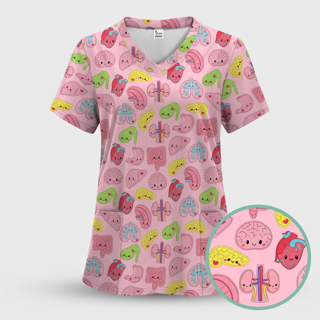 Cute Anatomy Scrub for Nurses - Funny Cartoon Organs Pattern Design - Gift for Women RN LPN & Medical Students
