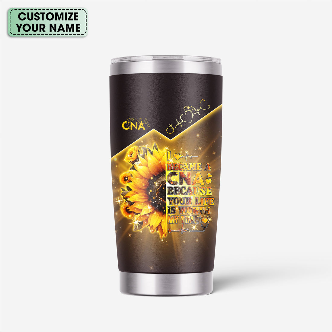 Personalized CNA Floral Tumbler - Stethoscope Sunflower Graphic Design - Gift for RN LPN CNA
