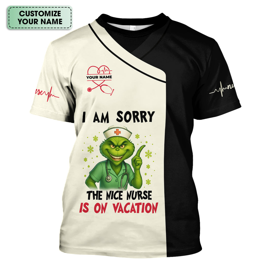 Personalized Funny Nurse Christmas Shirt - The Nice Nurse Is On Vacation Sarcastic Quote - Gift for RN LPN CNA