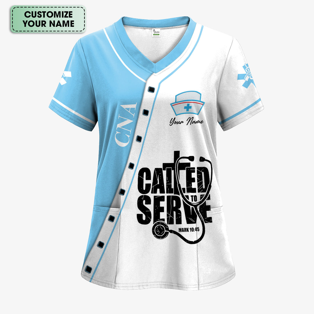 Personalized CNA Nurse Scrub Top - Called to Serve Christian Nursing Apparel - Healthcare Worker & Medical Staff Gift