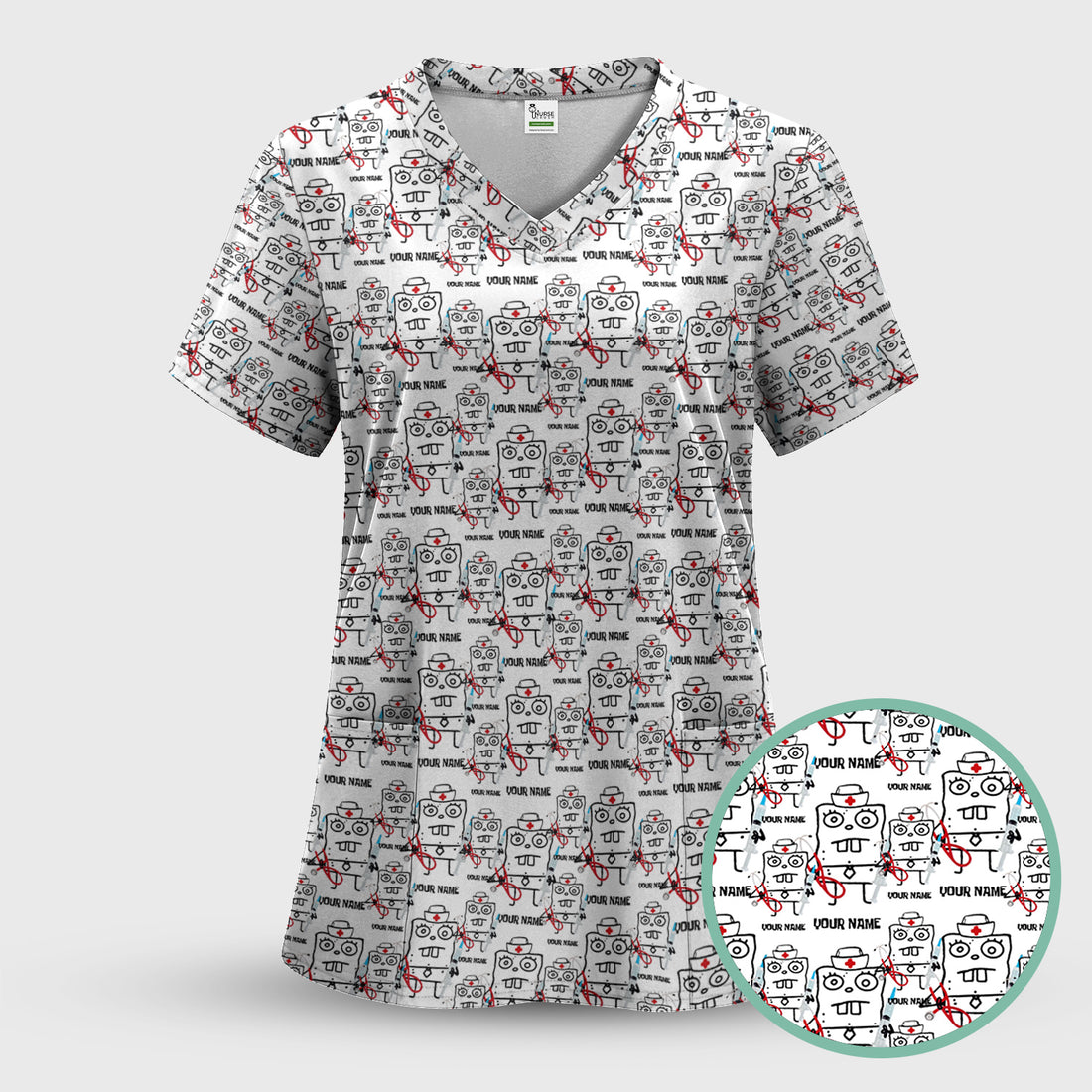 Personalized Doodle Bob Nurse Scrub - Funny Cartoon Medical Design - Custom Gift for RN MD CNA Healthcare