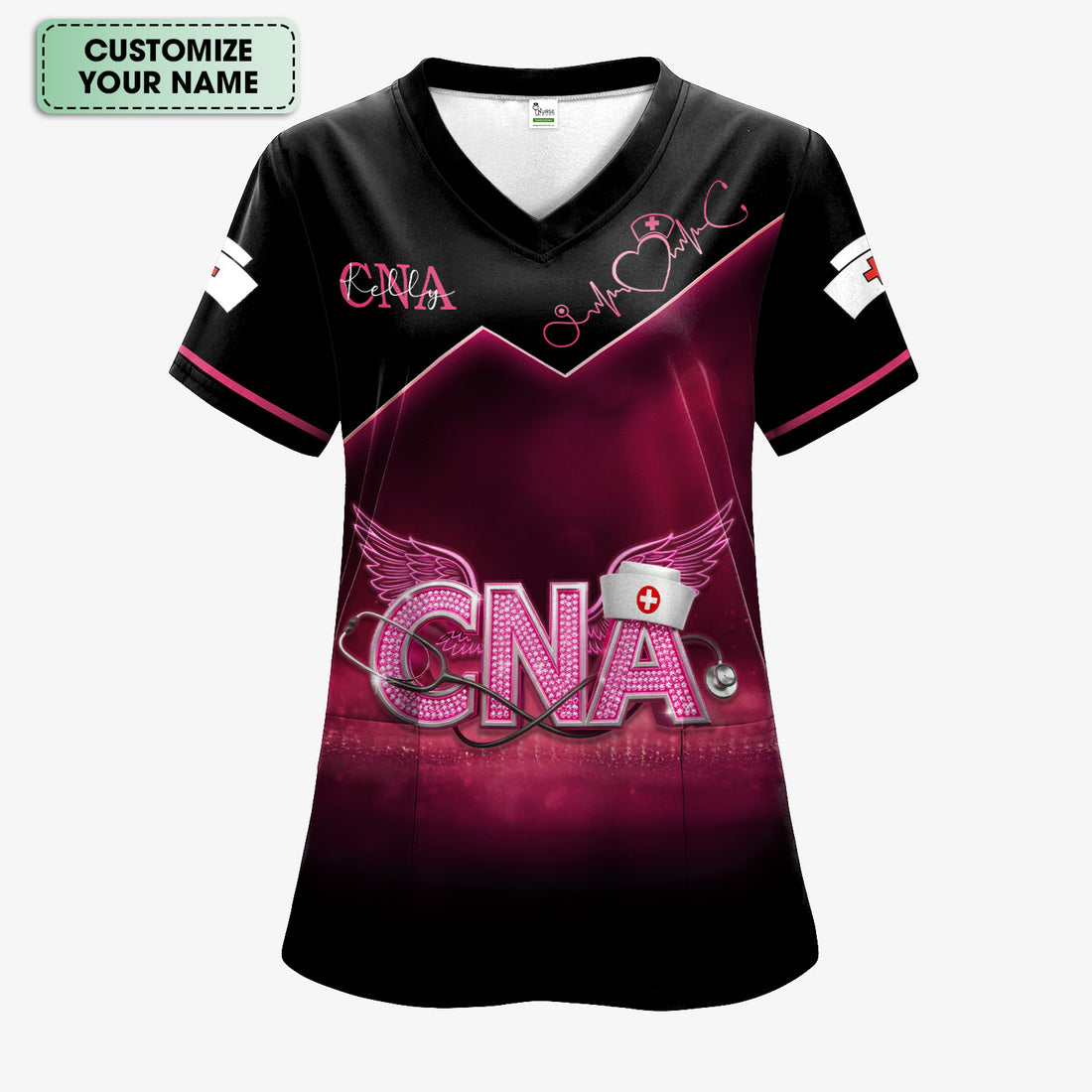 Personalized CNA Nurse Scrub Top - Inspirational Quote I Can't Promise to Fix All Problems - Healthcare Workers & Nursing Staff Gift