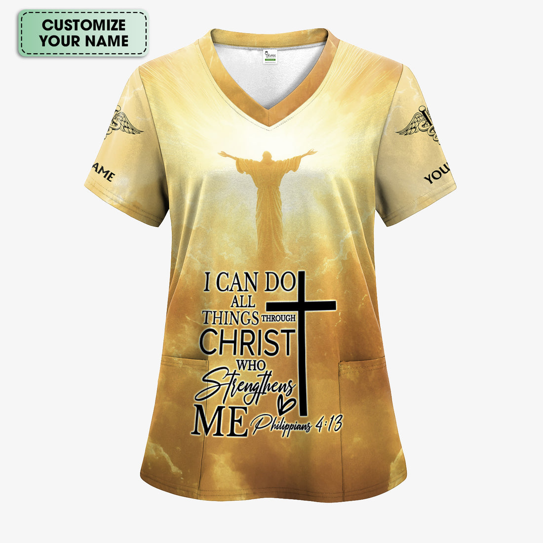 Personalized Christian Nurse Scrub - Christian Bible Verse Top for RN LPN CNA - Healthcare Workers & Nursing Staff Gift