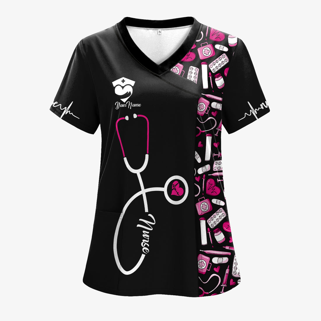 Cute Stethoscope Heart Nurse Scrub - Personalized Nursing Pink Medical Design - Gift for RN LPN CNA Healthcare Workers