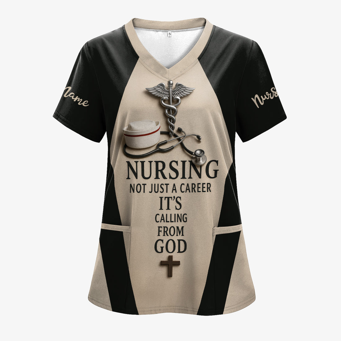Personalized Nurse Scrubs - Stethoscope & Cross Design - Nursing Is A Calling Shirt for RN CNA LPN Healthcare Workers