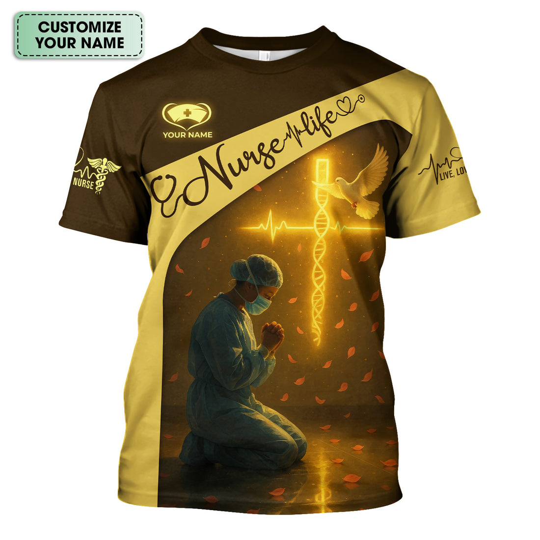 Christian Nurse Shirt for Women RN LPN CNA - Personalized Prayer Design with Dove and DNA Cross - Faith-Based Gift for Healthcare Workers Who Trust in Christ