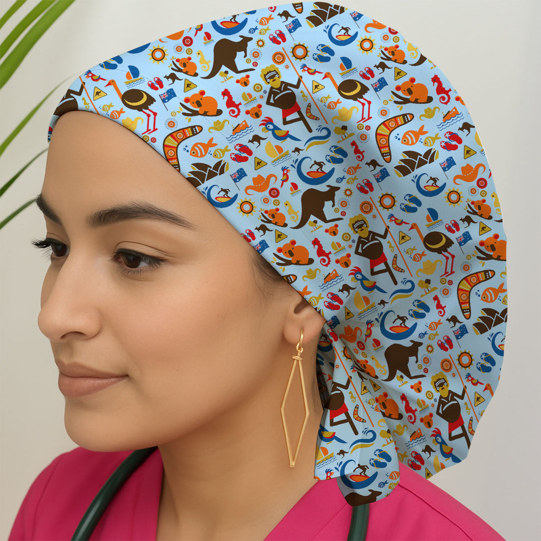 Indigenous Inspired Icon Scrub Cap, Australia Culture Pattern Nurse Hat, Comfortable Scrubs For Nursing