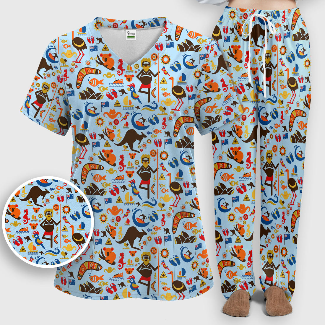 Indigenous Inspired Icon Scrub Set, Australia Culture Pattern Nurse Shirt, Comfortable Scrubs For Nursing