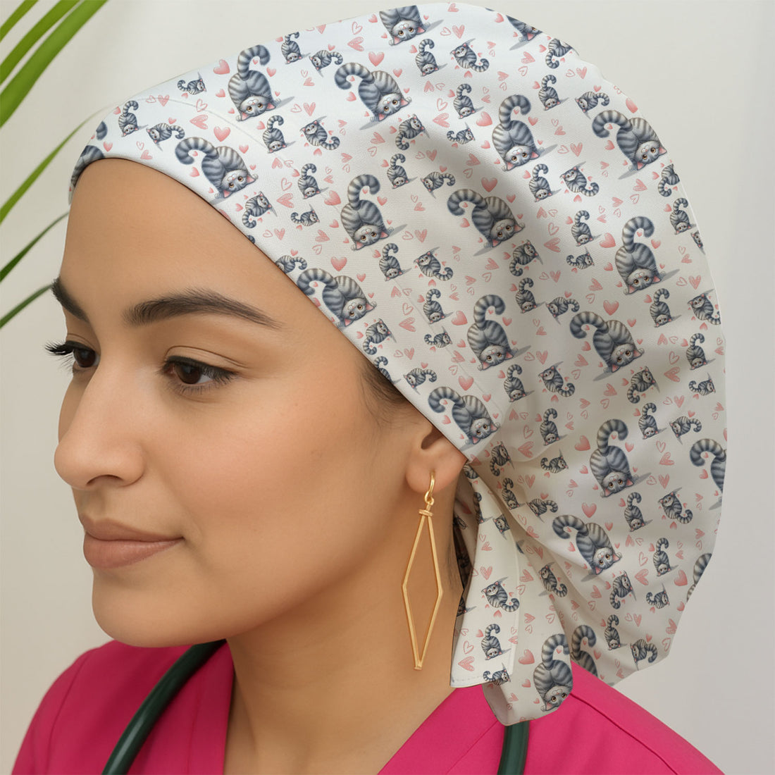 Cute Cat Butt Pattern Scrub Cap, Funny Cat Nursing Hat, Comfortable Scrubs For Nurses