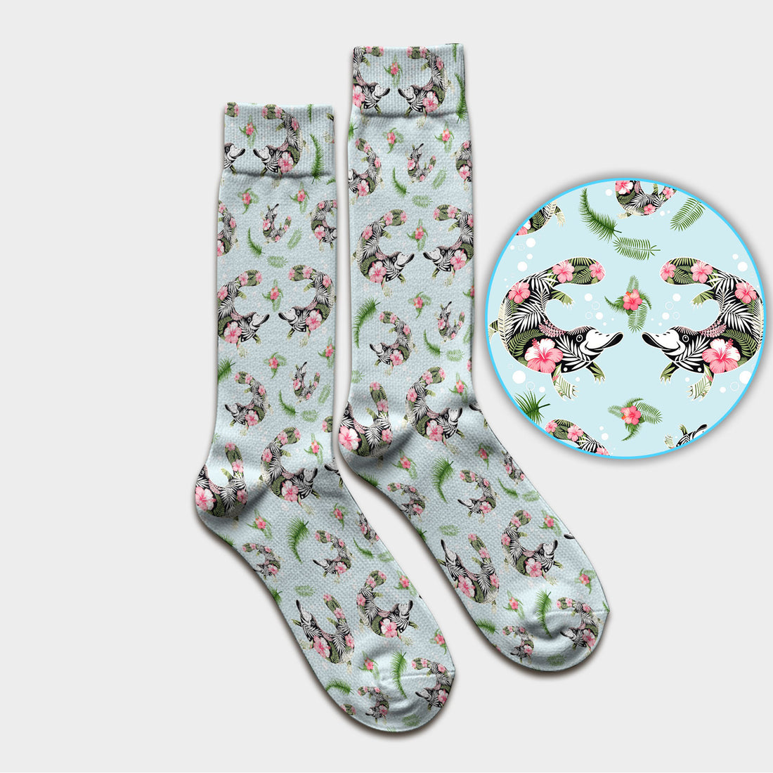 Cute Platypus Scrub Socks, Tropical Floral Animal Pattern Nurse Sock, Breathable Fabrics Nursing Uniform