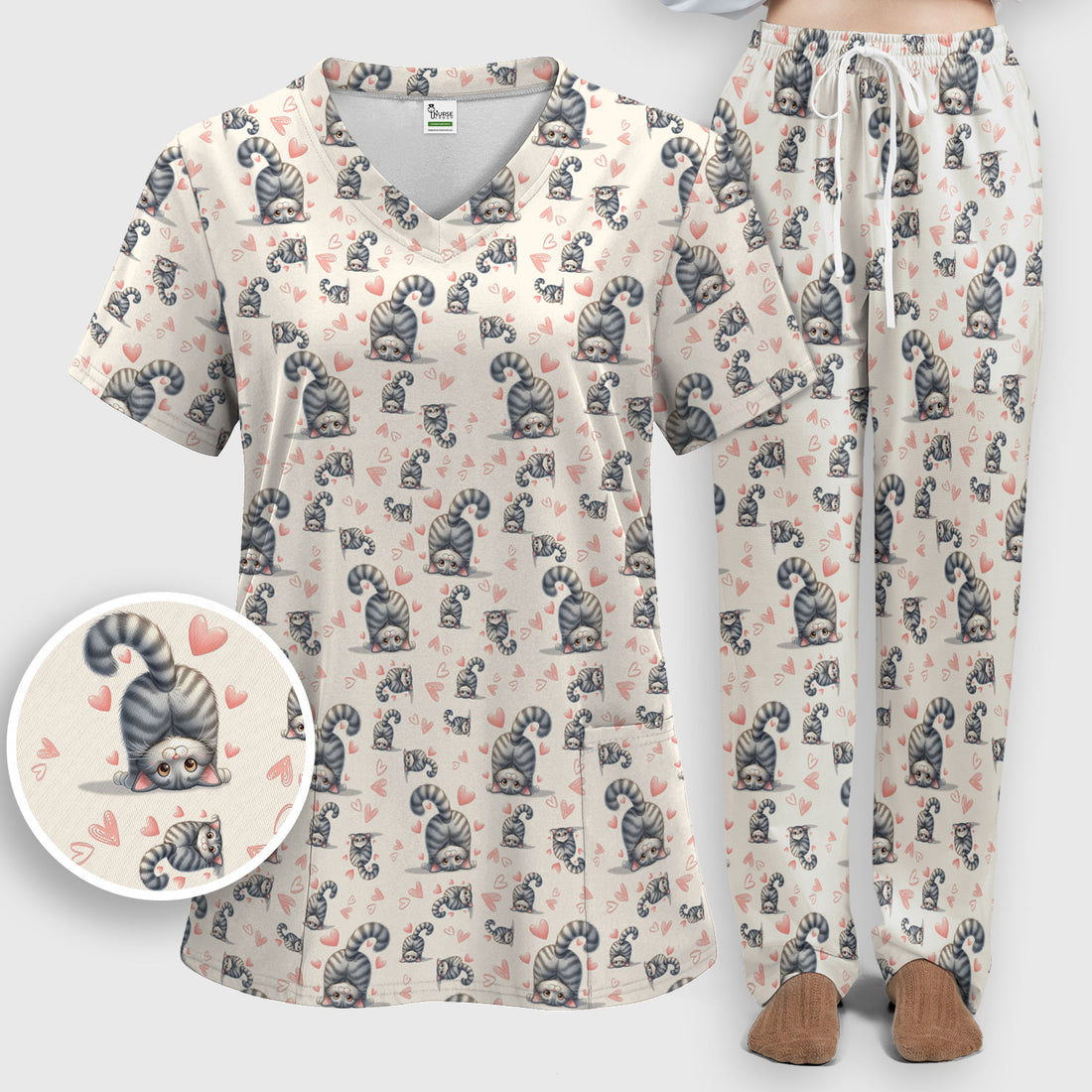 Cute Cat Butt Pattern Scrub Set, Funny Cat Nursing Shirt, Comfortable Scrubs For Nurses