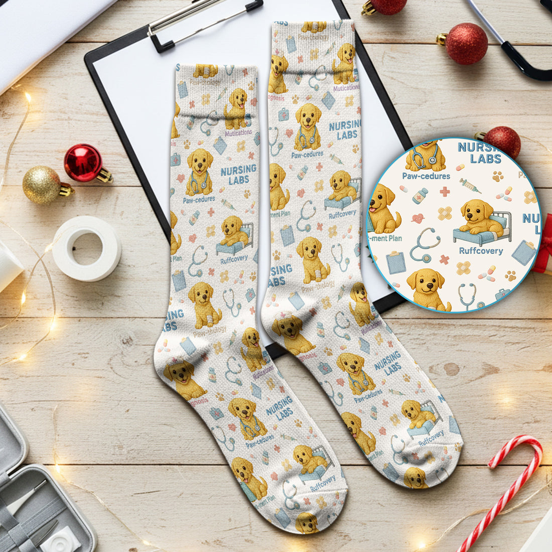 Labrador Nursing Scrub Socks, Cute Dog Pattern Nurse Uniform, Comfortable Scrubs For Nurses