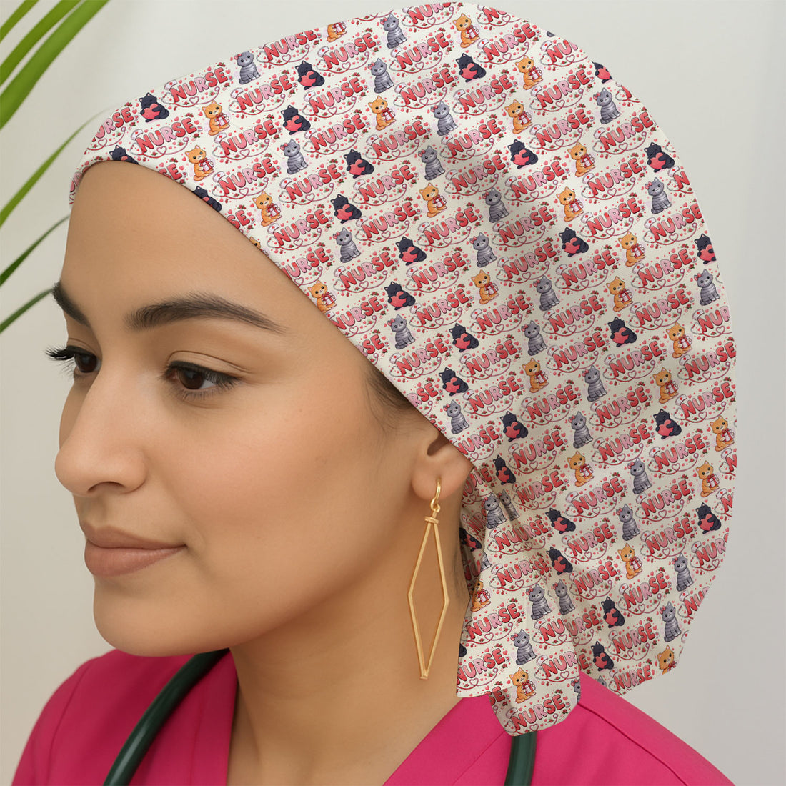 Nurse Cat Heart Pattern Valentine Scrub Cap, Bouffant Scrub Caps for Women