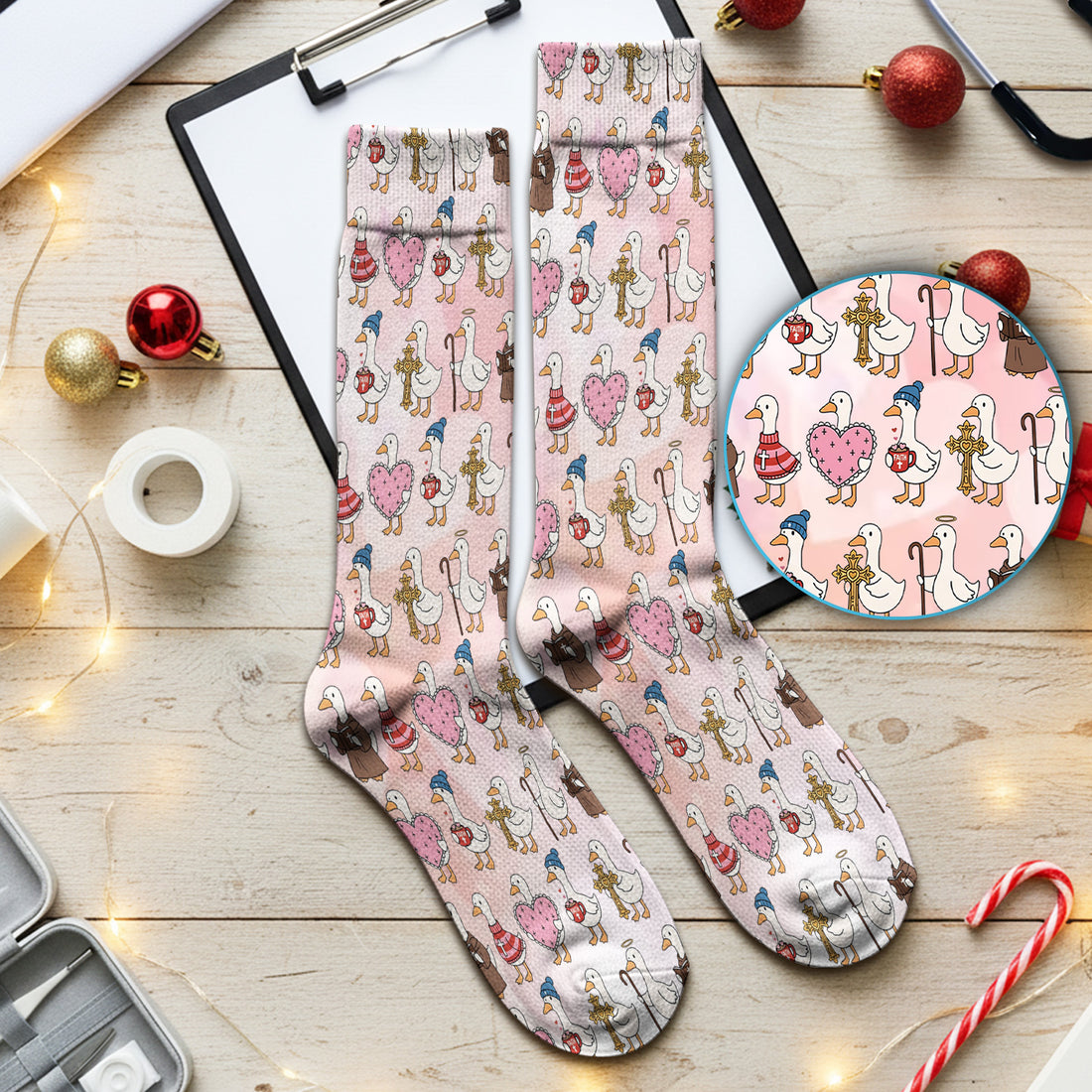 Goose Valentine Heart Illustration Design Socks, Breathable Fabrics Medical Uniform