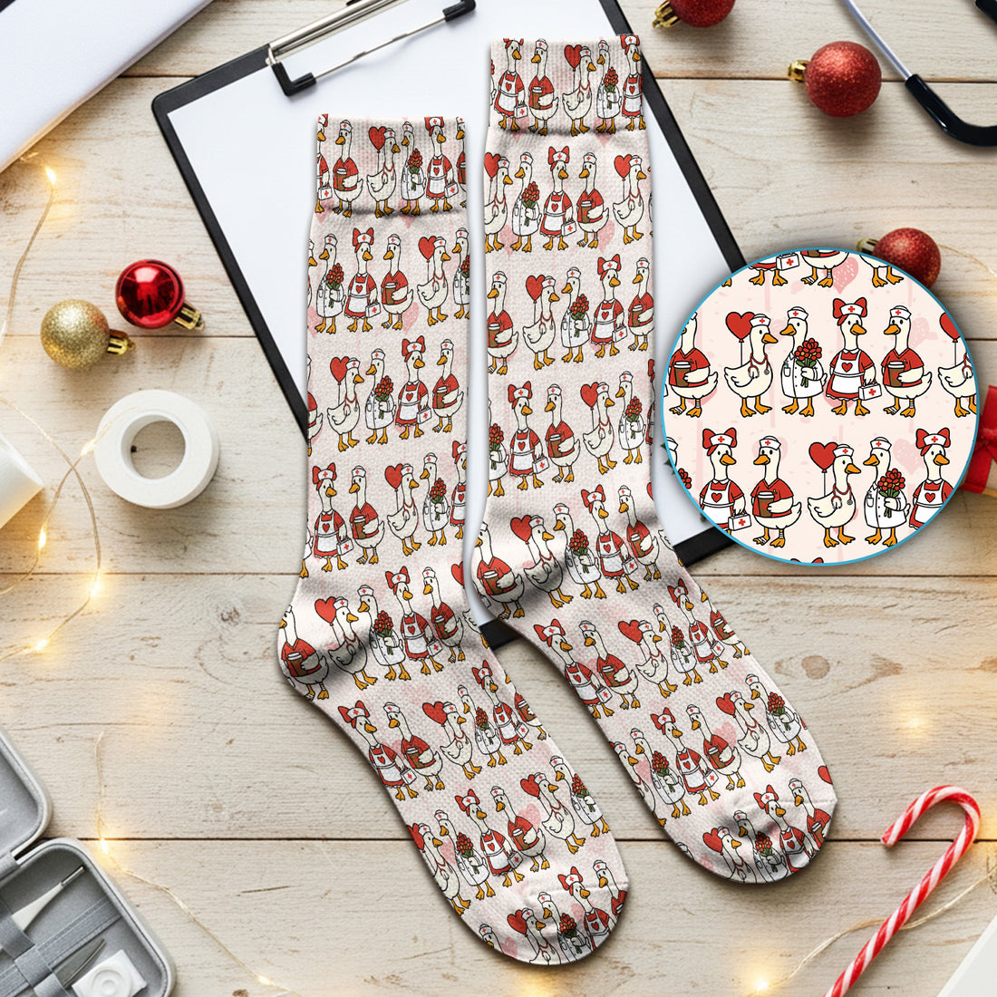 Valentine Nurse Goose with Heart Pattern Socks, Adult Socks for Men and Women